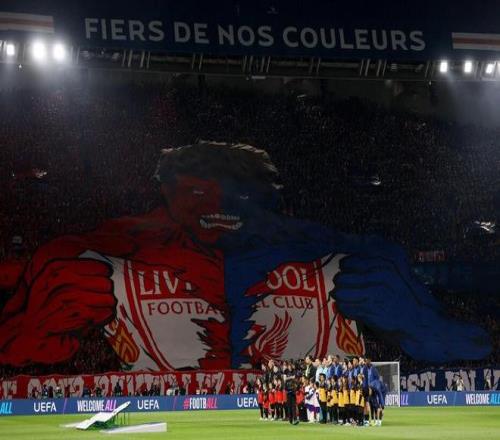 巴黎圣日耳曼球迷用極具氣勢的方式迎接主場對陣利物浦這場歐冠四分之一決賽,展示了以綠巨人為主題的巨型TIFO,為主隊助威。