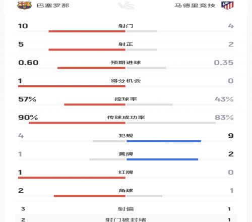 庫(kù)巴西染紅!巴薩vs馬競(jìng)半場(chǎng)數(shù)據(jù):射門(mén)104,射正52,犯規(guī)49