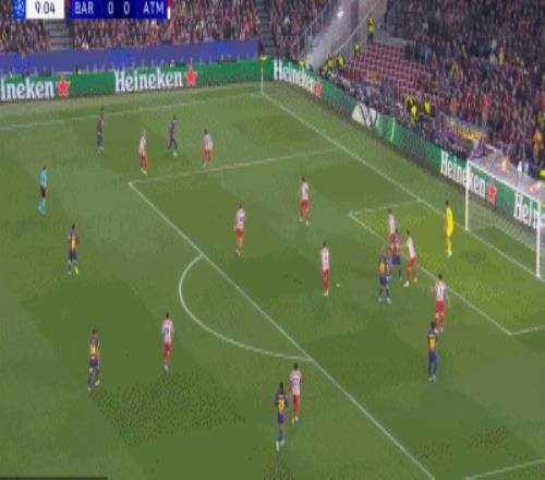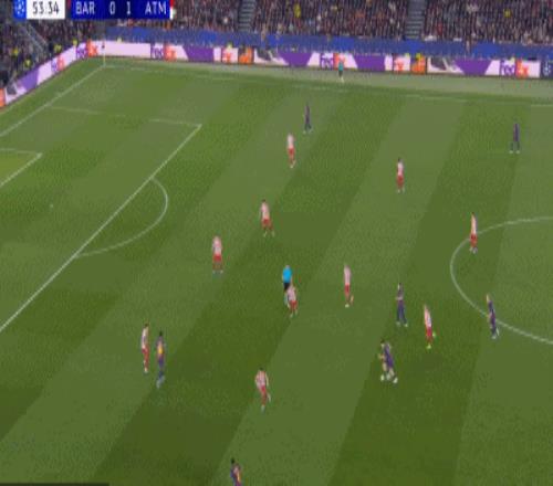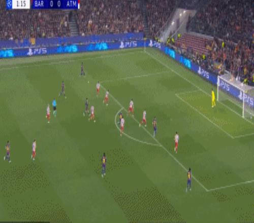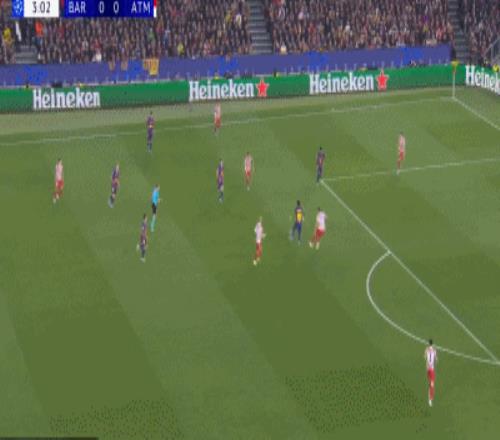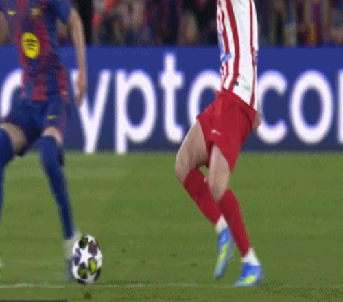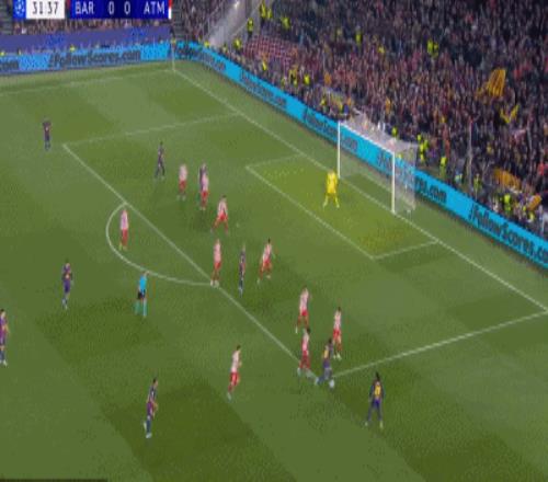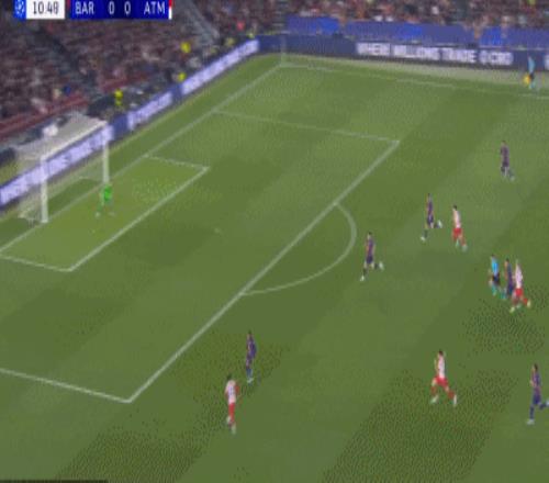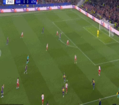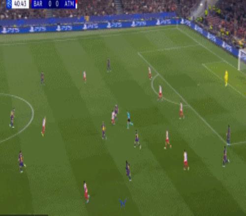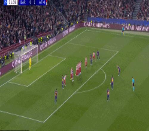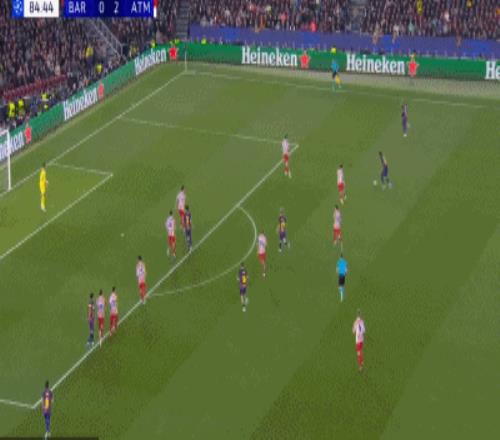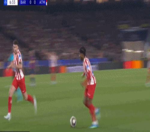 第45分鐘,阿爾瓦雷斯直接任意球破門(mén),馬競(jìng)1-0巴薩!