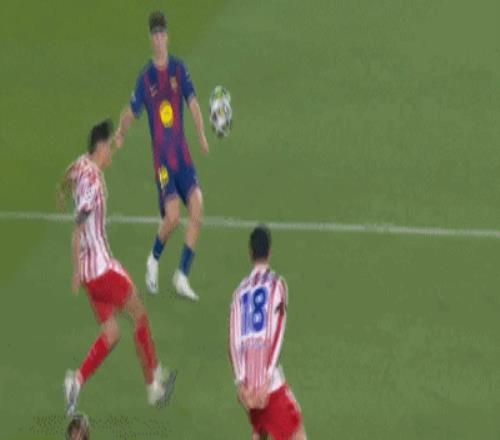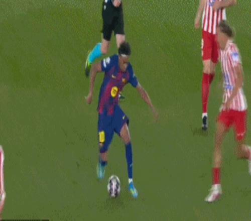 第33分鐘,亞馬爾禁區(qū)內(nèi)連過(guò)數(shù)人,隨后打門(mén)被擋出