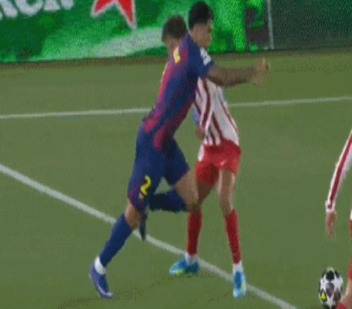 第42分鐘,阿爾瓦雷斯挑傳,朱利亞諾-西蒙尼插上形成單刀,庫巴西禁區(qū)外戰(zhàn)術(shù)犯規(guī),剛開始裁判判罰黃牌,但馬競球員集體投訴,裁判回看VAR確認(rèn)庫巴西是防線最后一人,改判直接紅牌,巴薩剩下10人作戰(zhàn)。