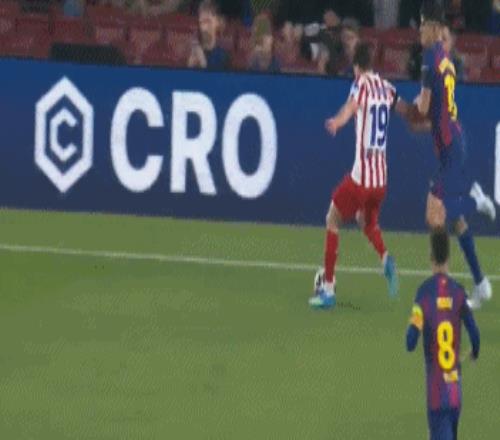 第5分鐘,朱利亞諾-西蒙尼直傳,阿爾瓦雷斯單挑巴薩后防線,右路內(nèi)切變向晃開角度,門前低射沒能打穿霍安-加西亞的十指關(guān)。