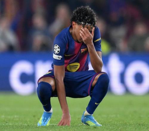 歐冠02輸球亞馬爾哭了!蹲在地上抹淚馬競球員紛紛安慰