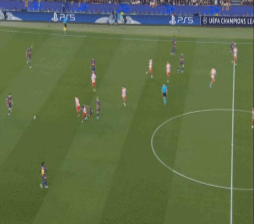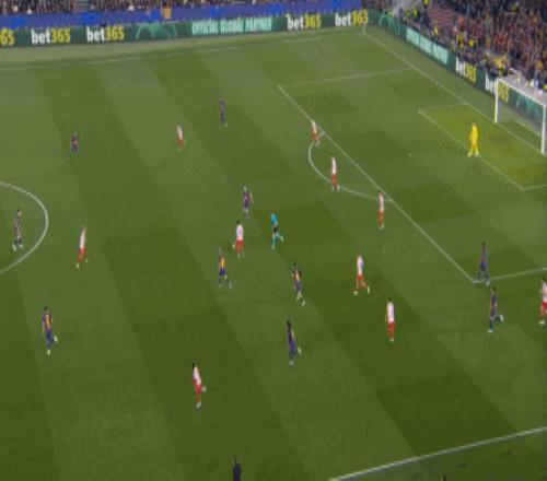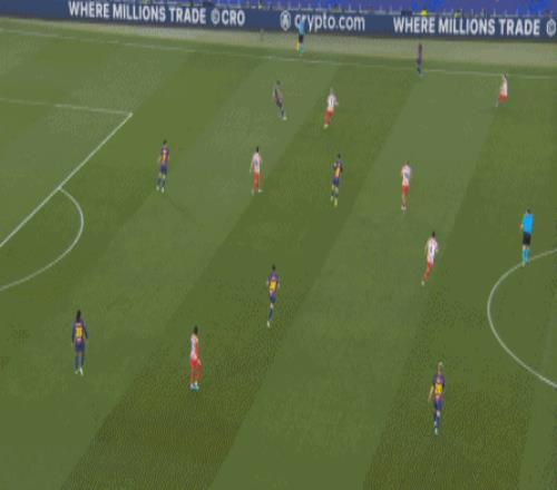 不過在開局階段,這一點(diǎn)并沒有顯著地影響巴薩,開場不到2分鐘,他們就順利地打穿中場,流暢地制造了射門機(jī)會(huì):