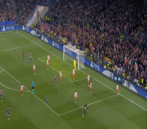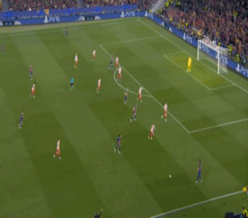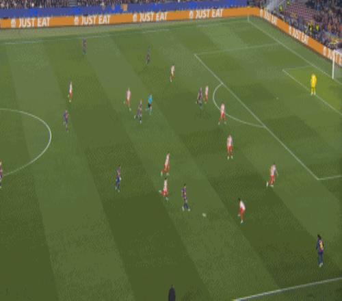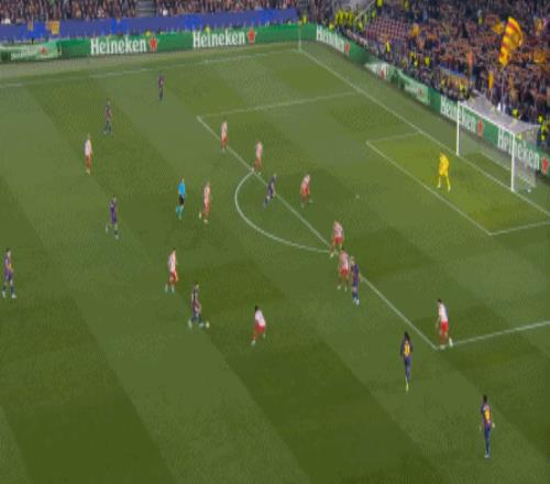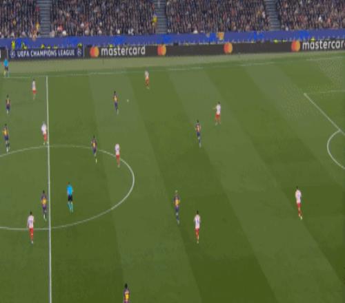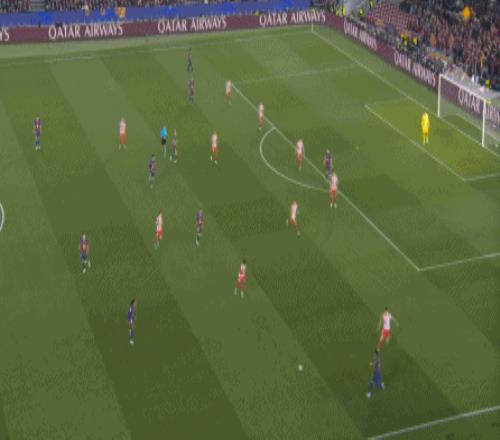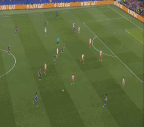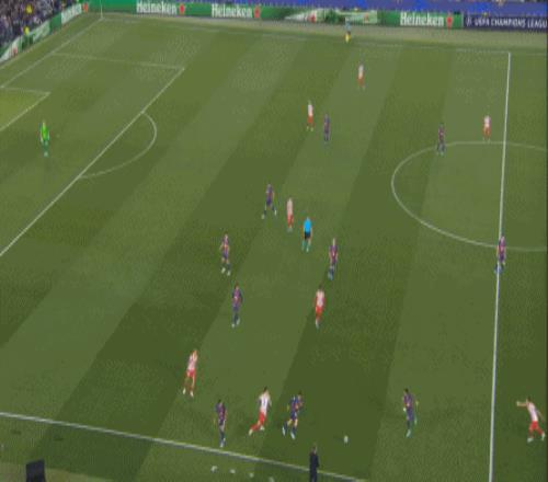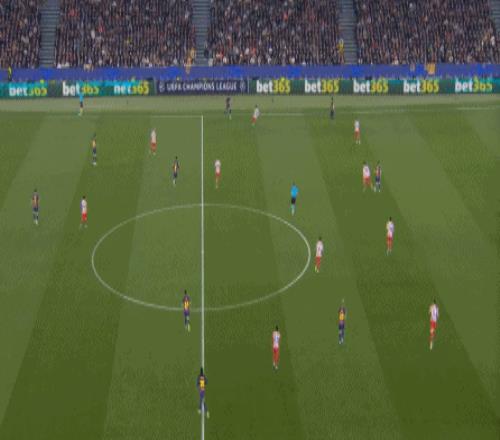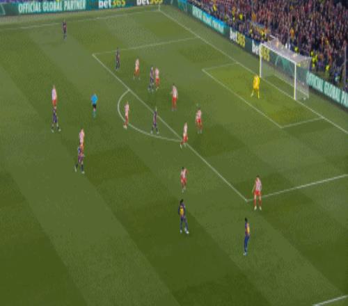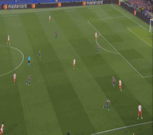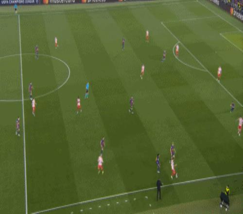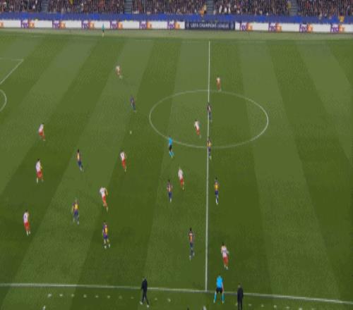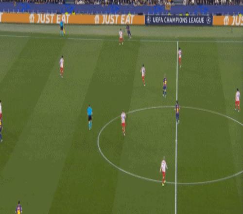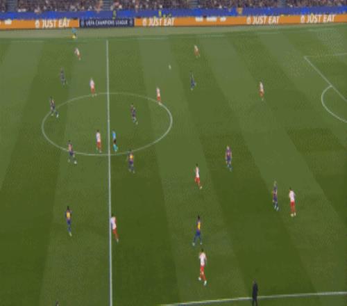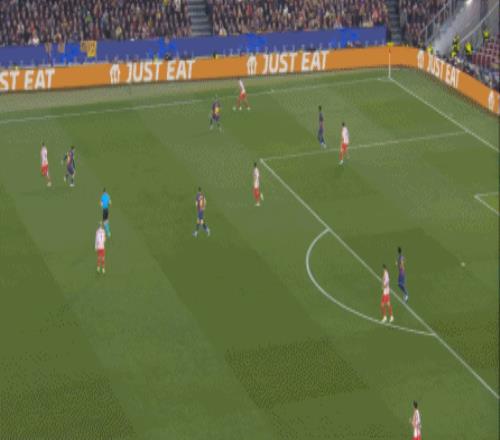 在這之后,巴塞羅那才算逐漸進(jìn)入了狀態(tài),嘗試了兩次對(duì)右肋的進(jìn)攻,一次失敗,一次成功: