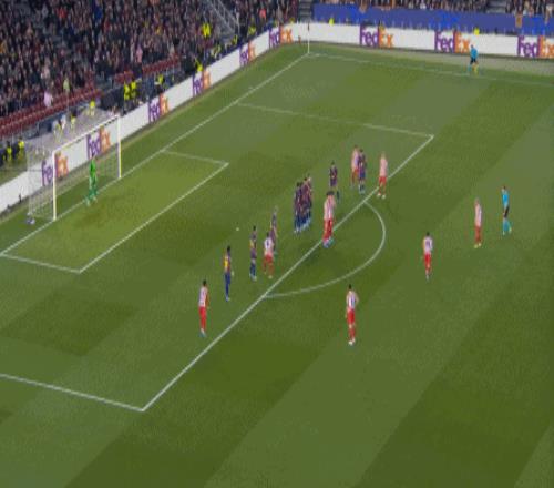 就是在這一球里,小西蒙尼制造了庫巴西的紅牌,而阿爾瓦雷斯直接罰進(jìn)了這個(gè)任意球,局勢因此立刻倒向了馬競這邊: