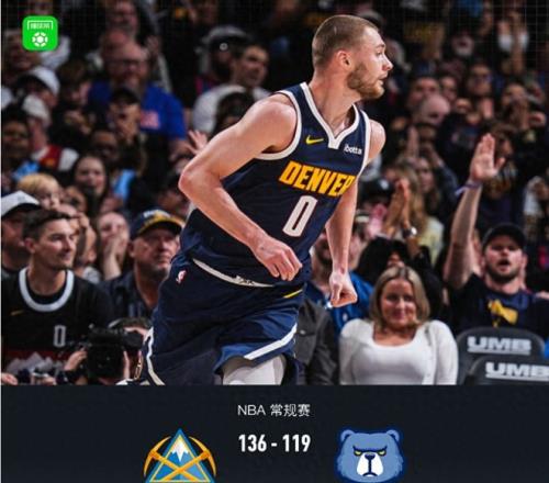 北京時間4月9日,NBA常規(guī)賽西部焦點戰(zhàn)落下帷幕,丹佛掘金坐鎮(zhèn)主場以136-119擊敗孟菲斯灰熊,用一場酣暢淋漓的大勝繼續(xù)鞏固西部第三的排名。