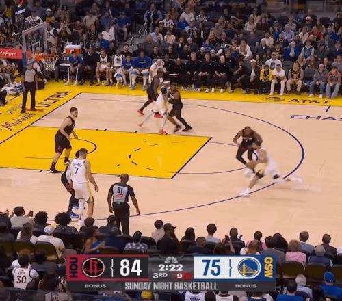 勇士打火箭這場,庫里給杜蘭特上了一堂"預判課"。第二節(jié)一次快攻,庫里持球推進,KD退防時左腳試探性前伸——他賭庫里會像往常一樣,運兩步撤到三分線外。