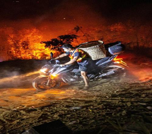 △ 2022重慶北碚山火期間,參與救援的摩托車。(圖/鄭新洽 攝)