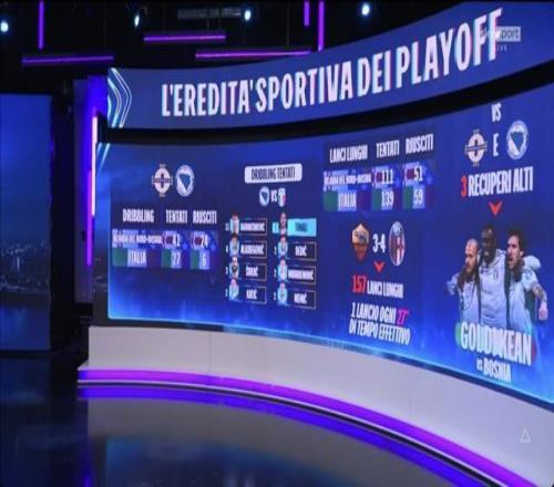 ?兩場附加賽,意大利的對手北愛爾蘭和波黑,總共嘗試盤帶41次,成功24次;意大利隊嘗試盤帶27次,成功6次。