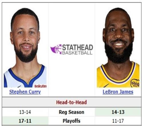 若一切順利,詹姆斯和庫里將迎來第28次常規(guī)賽交手。此前27次,詹姆斯14勝13負(fù)稍稍占優(yōu)。