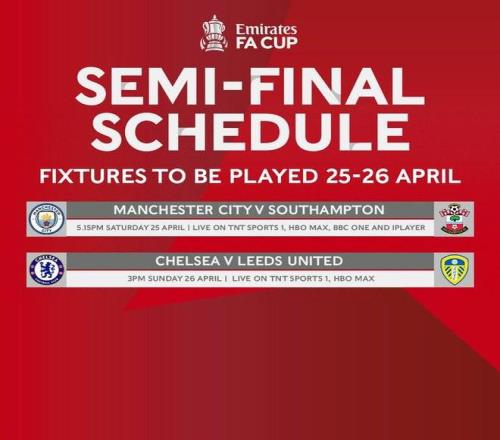 北京時間4月9日,英足總官方發(fā)布公告,公布了足總杯半決賽的開球時間。