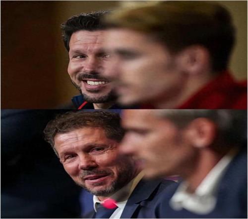 下圖是近日網(wǎng)上流傳甚廣的一張拼接圖,上面的圖片是2016年的發(fā)布會上45歲的西蒙尼望向25歲的格列茲曼,那時兩個人的臉上都還沒有歲月的痕跡。下圖則是前不久歐冠淘汰賽八強首回合馬競與巴薩的賽前發(fā)布會時西蒙尼真情流露,西蒙尼感謝了格列茲曼這十幾年的付出,并祝他一切順利時。