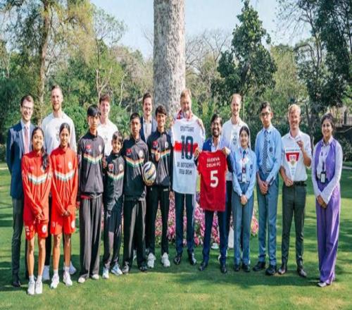 賽場(chǎng)之外,斯圖加特的教練團(tuán)隊(duì)也切實(shí)推動(dòng)了足球運(yùn)動(dòng)在印度青少年群體中的普及。團(tuán)隊(duì)到訪薩沃塔姆國際學(xué)校,為校內(nèi)約 100 名孩子帶來了他們?nèi)松械谝惶孟到y(tǒng)化的足球訓(xùn)練課,印度主流媒體 NDTV、Khelo 等均到場(chǎng)對(duì)本次活動(dòng)進(jìn)行了專題報(bào)道。此次行程的另一高光時(shí)刻,是斯圖加特團(tuán)隊(duì)與蘇德瓦青訓(xùn)學(xué)院的孩子們一同到訪德國駐印度德里大使館,與德國駐印度大使菲利普?阿克曼展開了輕松友好的交流,現(xiàn)場(chǎng)設(shè)置的迷你訓(xùn)練展示環(huán)節(jié),也讓孩子們?cè)谕饨粓?chǎng)合盡情展現(xiàn)了足球運(yùn)動(dòng)的魅力。