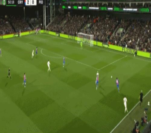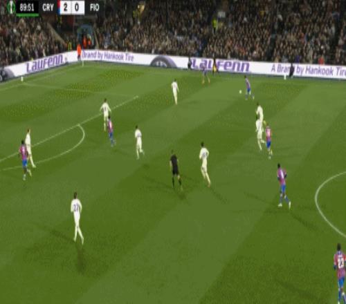 第90分鐘,鐮田大地傳中,薩爾頭球破門再下一城,水晶宮3-0佛羅倫薩