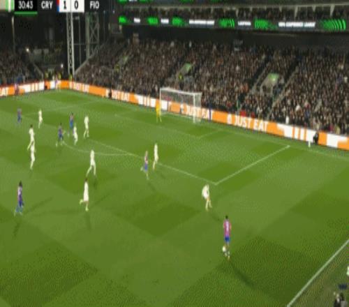 第31分鐘,米切爾補(bǔ)射破門將比分?jǐn)U大,水晶宮2-0佛羅倫薩