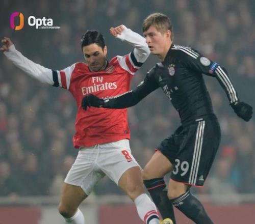 Opta統(tǒng)計,賴斯在對葡萄牙體育的比賽中13次贏得球權,是2013年2月阿森納對拜仁的比賽中阿爾特塔之后,槍手中場在單場歐冠淘汰賽比賽中這一數據最多的一次(阿爾特塔那場比賽也是13次)。