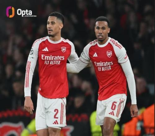 Opta統(tǒng)計,阿森納以下四項數據是本賽季歐冠球隊中最好的: