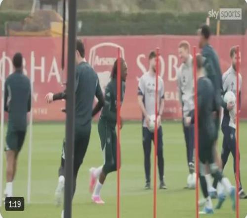 埃澤參加了周四的團隊訓練,不過視頻中看,薩卡、廷貝爾和厄德高缺席了訓練。