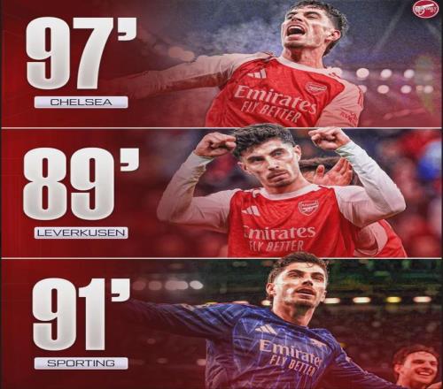 哈弗茨最近代表阿森納打進的三粒進球,全部是左右比賽結果的絕殺(或絕平):