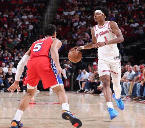 北京時(shí)間4月10日,NBA常規(guī)賽,火箭隊(duì)以113-102擊敗76人隊(duì)拿到八連勝,火箭反超湖人升西部第四。這場(chǎng)比賽恩比德因?yàn)殛@尾炎手術(shù)缺席,馬克西與喬治兩個(gè)巨頭都在,可首節(jié)火箭就領(lǐng)先10分,半場(chǎng)已經(jīng)拉開(kāi)到18分,火箭一度領(lǐng)先到28分,可末節(jié)費(fèi)城縮小到5分進(jìn)入決勝時(shí)刻,杜蘭特關(guān)鍵三分幫助火箭涉險(xiǎn)過(guò)關(guān)。