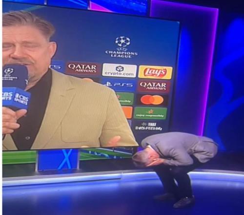 在利物浦輸給巴黎之后,杰米-卡拉格與傳奇門將彼得-舒梅切爾在演播室發(fā)生激烈爭(zhēng)執(zhí),一旁的蒂埃里-亨利試圖躲起來(lái)“逃避紛爭(zhēng)”。