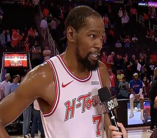 北京時間4月10日,NBA常規(guī)賽火箭主場113-102戰(zhàn)勝76人。賽后,火箭隊球員杜蘭特接受了媒體的采訪。
