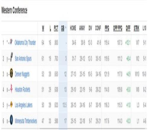 火箭也反超湖人升至西部第四,如果湖人擊敗勇士那么湖人又會重返第四的席位,火箭與湖人很可能在季后賽首輪相遇。