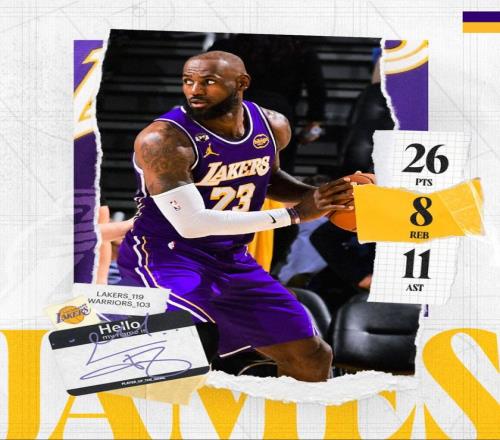 41歲的勒布朗-詹姆斯單核帶隊大勝勇士,他在末節(jié)提前打卡下班,32分鐘,17中11,三分5中3,罰球2中1,拿到26分11助攻8籃板2搶斷1蓋帽,命中率64.7%,三分命中率60%,真實命中率72.7%,正負(fù)值+19。