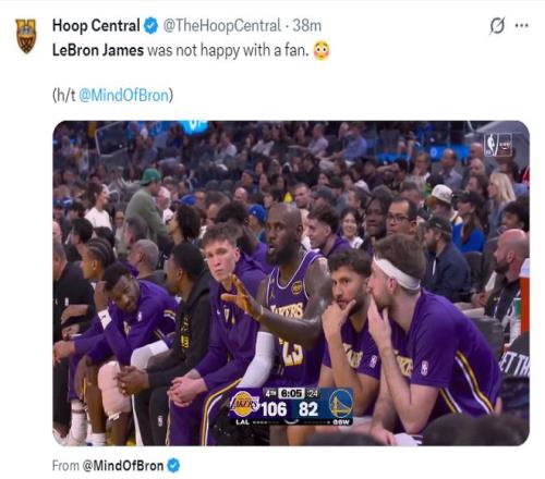 詹皇遭場邊球迷狂噴!賽后透露手部舊傷加重JR:表現(xiàn)已無可挑剔