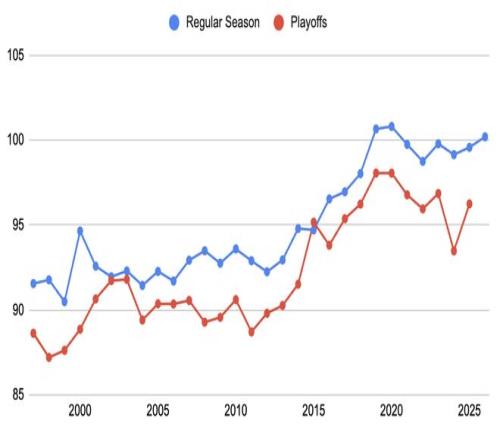 每年秋天,NBA球隊像換季收拾衣柜一樣,準時掏出同一句口號:我們要打得更快。尼克斯要提速,魔術(shù)要提速,連熱火和公牛也摻和進來。30支球隊里,估計有29支的戰(zhàn)術(shù)白板寫過"pace"這個詞——畢竟這是"pace-and-space"時代,18支球隊場均回合數(shù)破百,十年前只有73勝勇士和另一支球隊做到過。