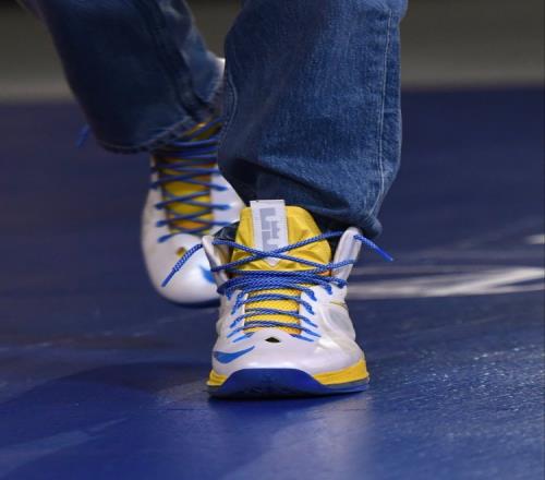 體育播報(bào)4月10日宣 勇士主場迎戰(zhàn)湖人,庫里今天穿著詹姆斯經(jīng)典戰(zhàn)靴LeBron 10入場。