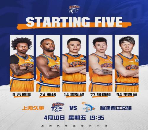 本場比賽,內線外援懷特塞德輪休,上海大鯊魚派出王哲林、張鎮(zhèn)麟、李弘權和雙外援古德溫、弗格的先發(fā)陣容。