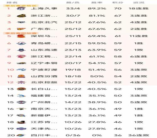 CBA最新積分榜