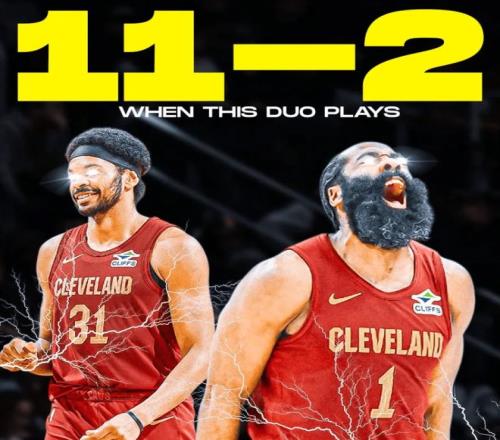 4月10日,美國(guó)媒體ClutchPoints曬出一份數(shù)據(jù):當(dāng)哈登和阿倫同時(shí)登場(chǎng)時(shí),騎士11勝2負(fù)!