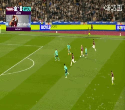 第66分鐘,巴勃羅巧傳,卡斯特利亞諾斯破門擴(kuò)大比分,西漢姆聯(lián)2-0