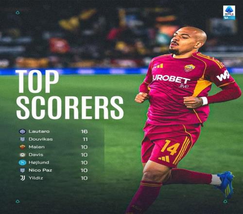 此役主場對陣比薩,馬倫完成意甲生涯首次帽子戲法。至此,這位荷蘭前鋒自冬窗加盟以來在意甲出場12次已打入10球,這使得他在意甲射手榜上與霍伊倫、尼科-帕斯、伊爾迪茲、凱南-戴維斯等人并列第三,僅次于打入16球的勞塔羅和打入11球的杜維卡斯。