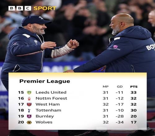這也導(dǎo)致熱刺少賽一場情況下被鐵錘幫在積分榜反超,熱刺當(dāng)前31場積30分,已位列聯(lián)賽第18位。