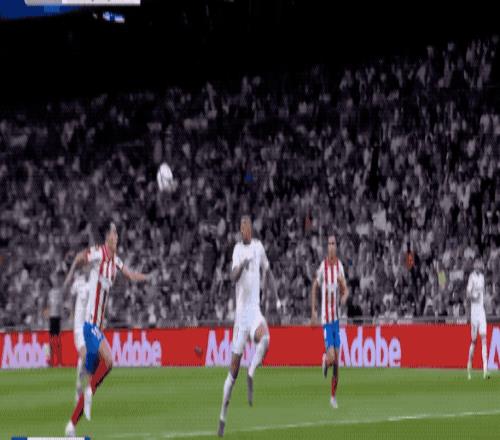 第42分鐘,卡瓦哈爾邊路傳中,姆巴佩高高躍起頭球擺渡,維尼修斯門前被動(dòng)頭球,錯(cuò)失良機(jī)。