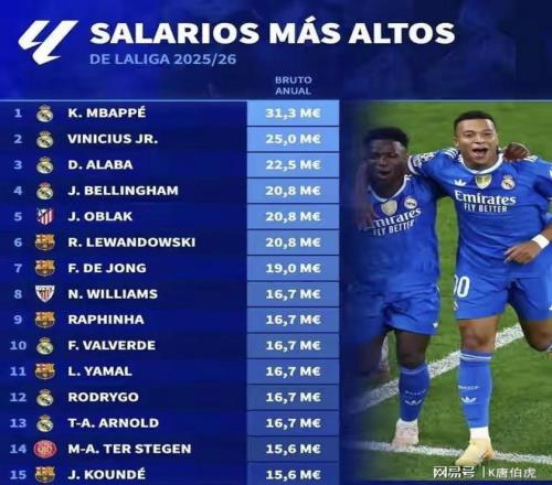 在西甲聯(lián)賽中,姆巴佩以3130萬歐元的稅前年薪位列第一,比收入第二的維尼修斯要高出足足500萬之多,可以說這樣的頂薪既讓他收獲滿滿,也讓他飽受爭議。畢竟自來到西甲后,他并未表現(xiàn)出獨(dú)一檔的存在,反而因?yàn)樗募用硕尰蜀R整個團(tuán)隊都在為他買單。球迷們反復(fù)嘮叨的:他走了,巴黎奪冠了;他來了,皇馬又四大皆空。