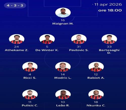 北京時間4月12日零點,意甲第32輪比賽,米蘭將在圣西羅迎戰(zhàn)烏迪內(nèi)斯。本場比賽之前,意大利天空體育對紅黑軍團(tuán)首發(fā)陣容進(jìn)行了預(yù)測。