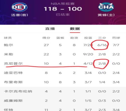 克尼佩爾拉胯!黃蜂100118不敵活塞,鮑爾27+5+8+2,米勒22+3+4
