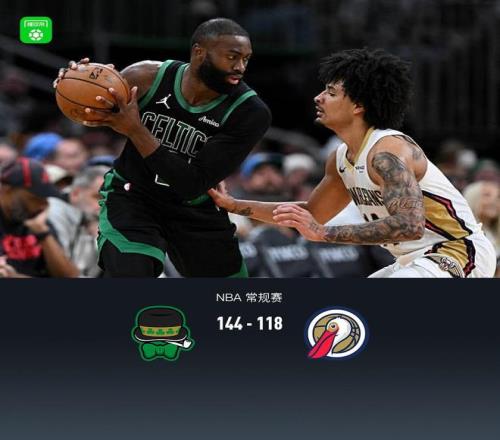 第四節(jié)凱爾特人加爾扎拿下9分,鵜鶘費爾斯拿下14分,最終凱爾特人144-118戰(zhàn)勝鵜鶘