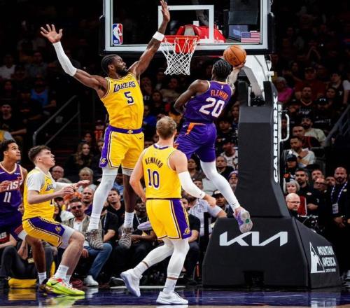 比賽開打雙方很快進入狀態(tài),詹姆斯延續(xù)上一場的良好手感,前3次出手砍下9分,太陽這邊內(nèi)外開花咬住比分。艾頓快攻上籃,馬威兩罰一中12-15,阿倫突破內(nèi)線裁判哨響湖人挑戰(zhàn)這次吹罰,回看過后湖人挑戰(zhàn)成功湖人拿到球權(quán)。詹姆斯利用擋開點到吉萊斯皮打板繼續(xù)得分,回過來馬威補籃得手,肯納德立馬回敬3+1湖人將比分拉開至21-14,狄龍半節(jié)不到已經(jīng)兩次犯規(guī)了,太陽外線防守輪轉(zhuǎn)問題太大了。布耶突破內(nèi)線直接被艾頓賞賜火鍋,八村塁中距離干拔不中,狄龍心態(tài)失控對拉拉維亞犯規(guī),詹姆斯點起奧尼爾要到犯規(guī)兩罰一中,艾頓內(nèi)線再次封蓋伊戈達羅,詹姆斯空切吃餅暴扣24-14太陽暫停了。回到比賽奧尼爾接球踩到邊線又是失誤,八村塁連得5分比賽這么打要花了,太陽連續(xù)3次三分打鐵,八村塁后仰造犯規(guī)兩罰一中30-14!
