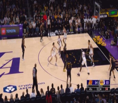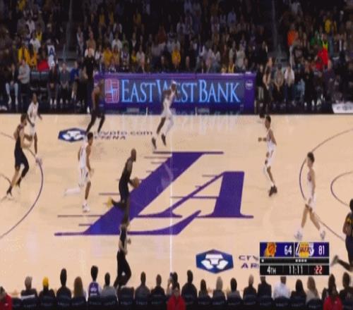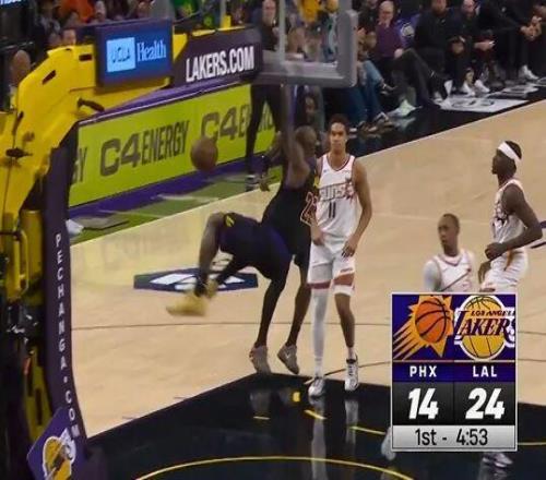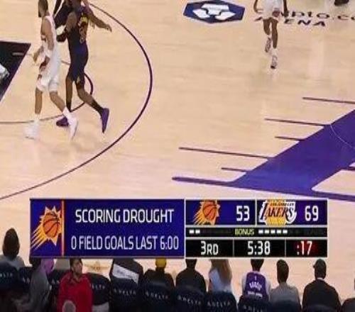 第三節(jié)拉閘斷電,半節(jié)時間無運動戰(zhàn)進球,湖人一度將領擴大到16分。
