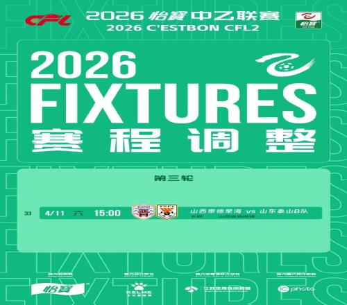 中乙第3輪山西崇德榮海vs山東泰山B隊(duì)比賽場(chǎng)地調(diào)整為山西省體育場(chǎng)