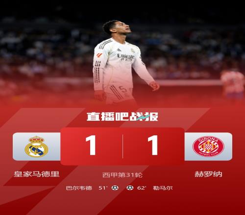 皇馬主場(chǎng)1-1戰(zhàn)平赫羅納,皇馬遭遇各賽事3場(chǎng)不勝,先賽積70分位居第2名,距榜首巴薩6分。