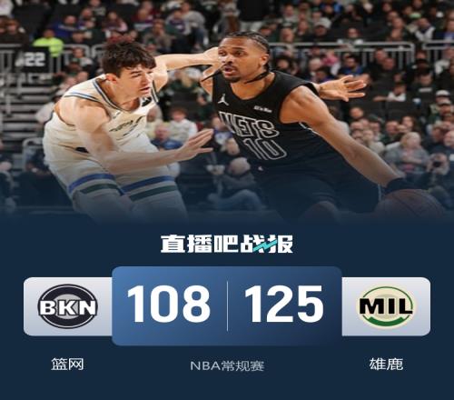 比賽開始,籃網上來就很慢熱,科馬克·瑞安里突外投單節(jié)砍下18分,帶領雄鹿一度領先到20分以上,艾蒂安外線連續(xù)三分止血單節(jié)15分追到差14分,次節(jié)雙方展開對攻戰(zhàn),籃網外線接連三分追分,雄鹿全民皆兵回應,半場雄鹿依然領先12分。下半場,雙方防守端都強度不高,籃網繼續(xù)追分,AJ·格林連續(xù)三分命中,普林斯外線也是命中4記三分,三節(jié)雄鹿領先15分,末節(jié)利德爾推搡希姆斯被判二級惡意直接驅逐,AJ·格林連續(xù)三分重新拉開比分,最終雄鹿125-108輕取籃網。