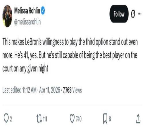 正如賽后湖人隊(duì)記Melissa Rohlin所說:“詹姆斯這樣的表現(xiàn)讓他愿意擔(dān)任第三進(jìn)攻選擇變得更加耀眼,盡管他已經(jīng)41歲,但他仍然有能力在任何一場比賽中成為場上最好的球員。”