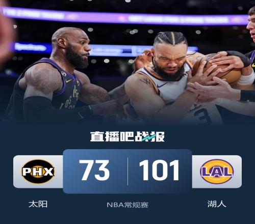 太陽全場僅得73分湖人鎖西部前四詹姆斯28+6+12肯納德19分